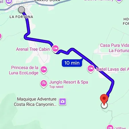 While enjoying your stay at Toucan River Paradise - River Access, Ac villa, be sure to explore La Fortuna's main landmarks, including El Salto Public Bath (4.8 km), Chachagua (2.8 km), and Arenal Vida Campesina, which can be reached with a 10-minute drive.